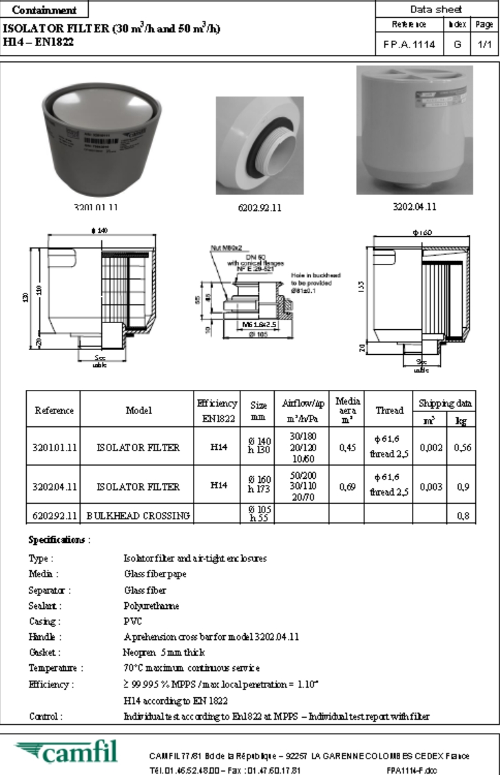 过滤精度 | H14符合EN1822 |