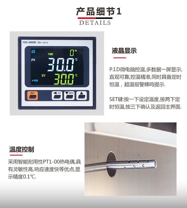 ♦采用具有超温偏差保护、微电脑PID温度控制器,带有定时功能,控温精准可靠。