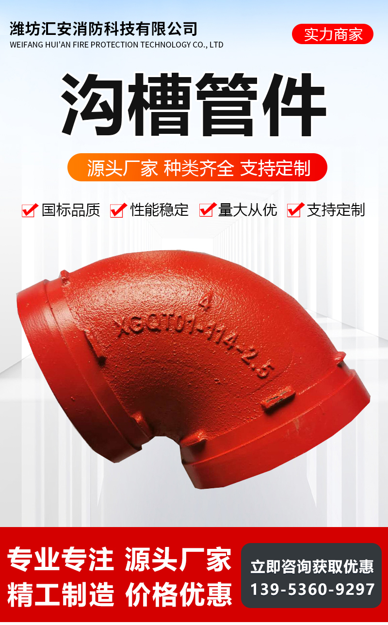 沟槽异径四通 90°弯头 使用寿命长 源头厂家 汇安消防