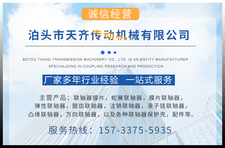 适用范围 | 适用于各种机械联接两同轴线的传动轴,通常用于动频繁的高低速运动 |