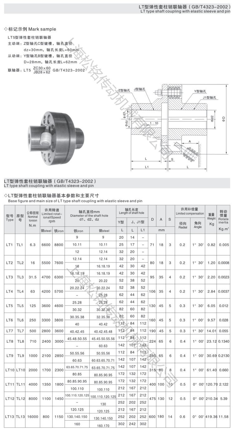 类型 | 柱销联轴器 |