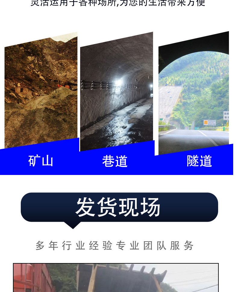 适用领域 | 煤矿、金属矿山、隧道、引水洞等 |