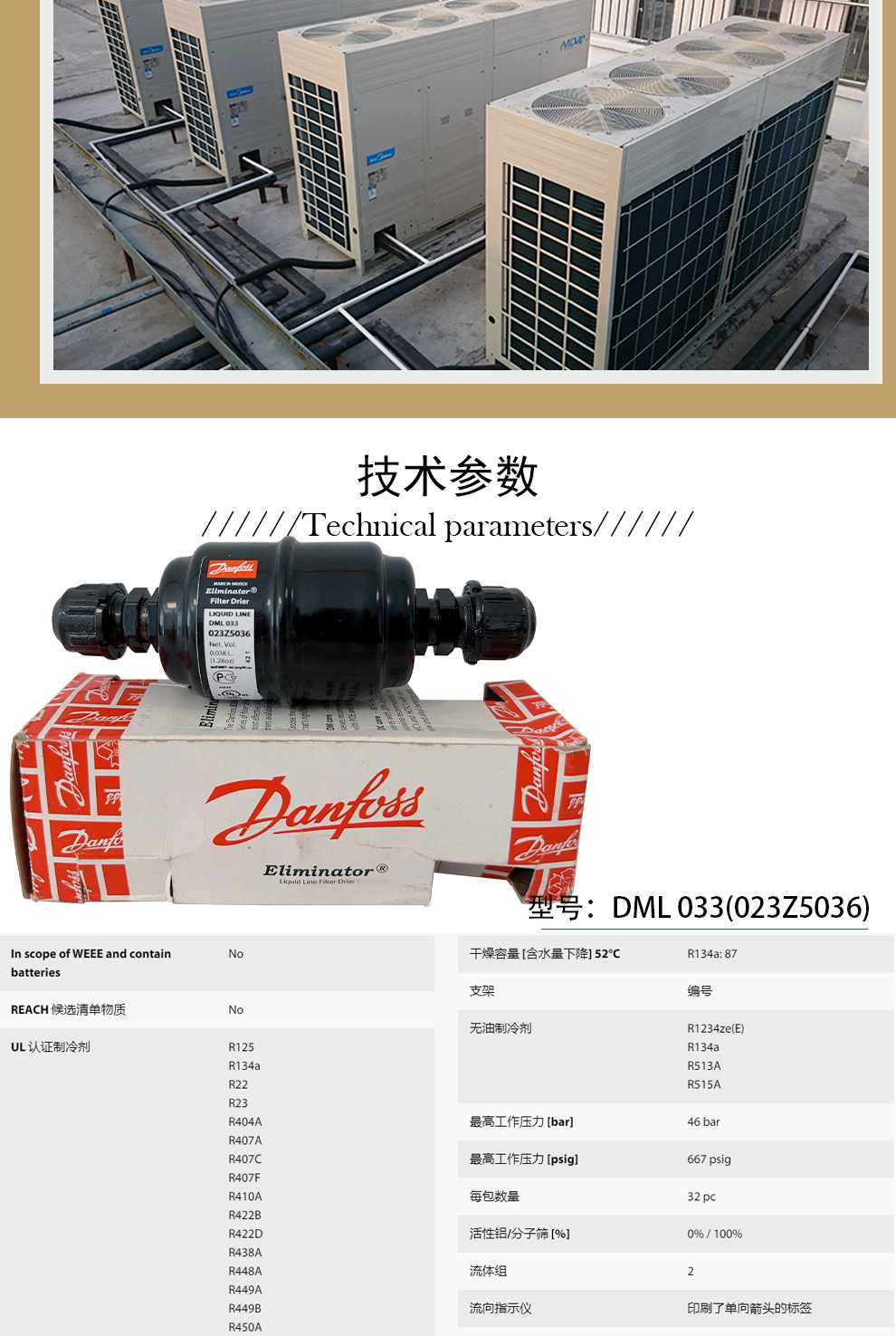 冷藏冷冻空气能空调机组通用型干燥过滤器丹佛斯DML 033(023Z5036)