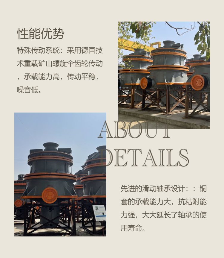 2、独特腔型设计,更大的给料口,进料口尺寸可达560mm,最适用于初级旋回及颚破之后的二破;(长破碎腔有利于提高其破碎效率)