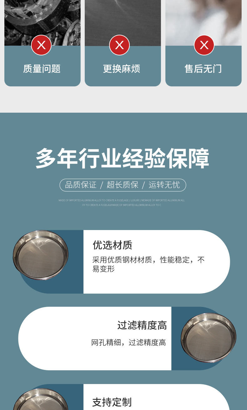 振江机械颗粒筛分过滤网圆形金属丝编织检验筛直径200/300筛框
