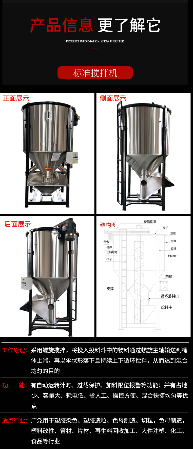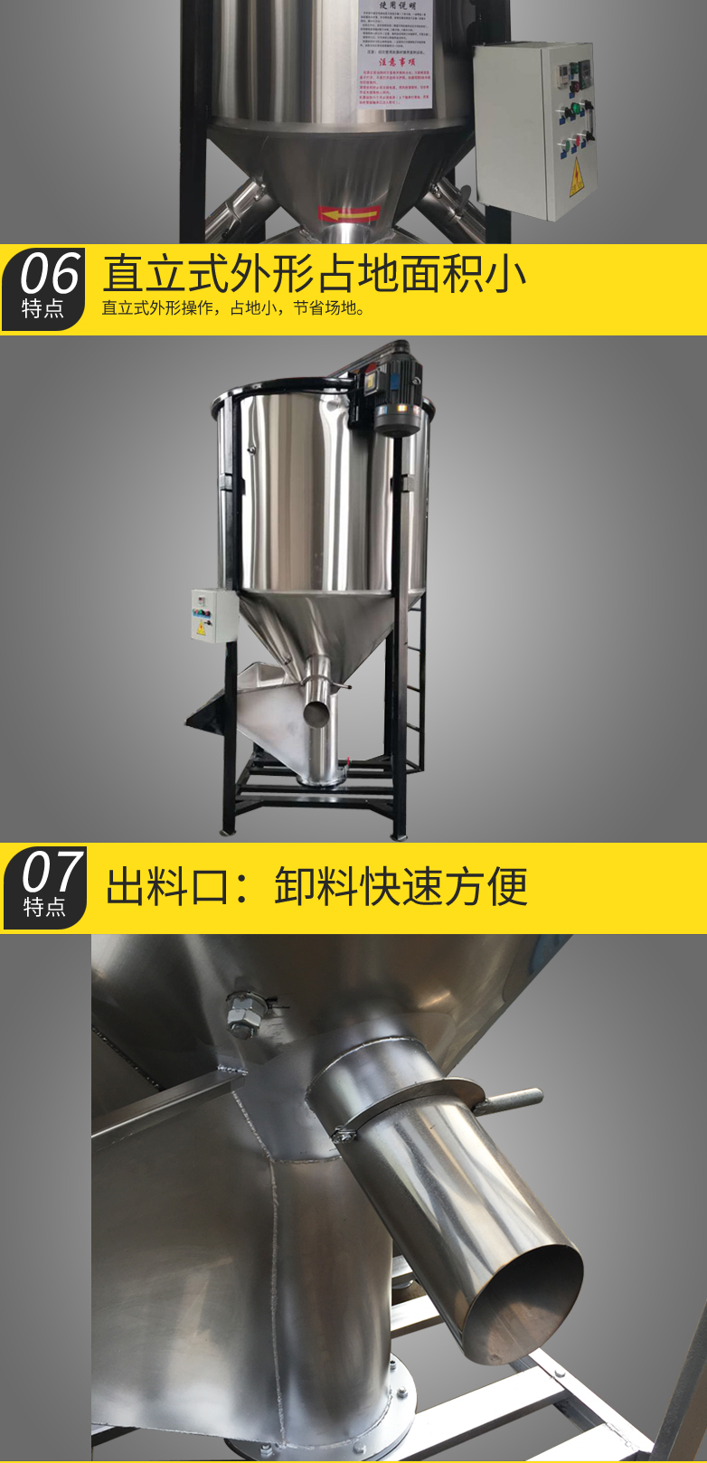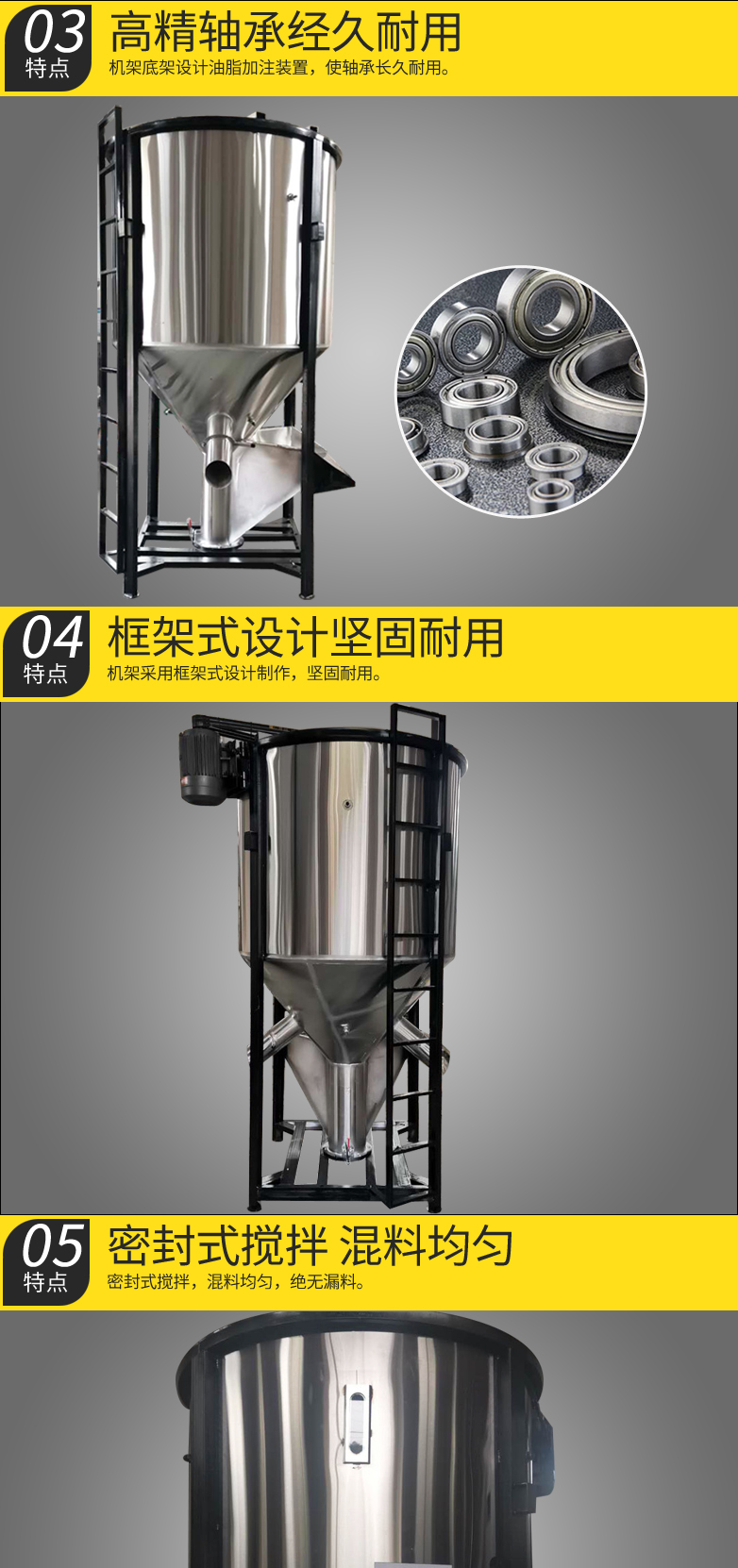 不锈钢立式塑料搅拌机塑料粉末破料混色机颗粒搅拌桶混料机厂家