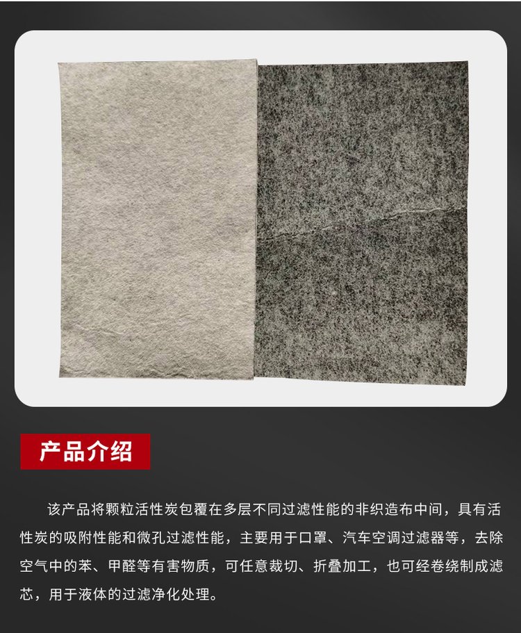 家用空气净化器 椰壳活性炭夹炭布 吸附高效炭材料 按图加工