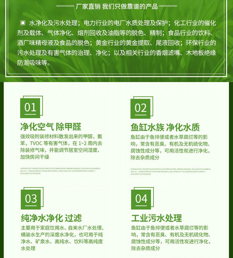 应用领域 | 空气净化,溶剂回收,无碱脱臭,催化剂载体 |