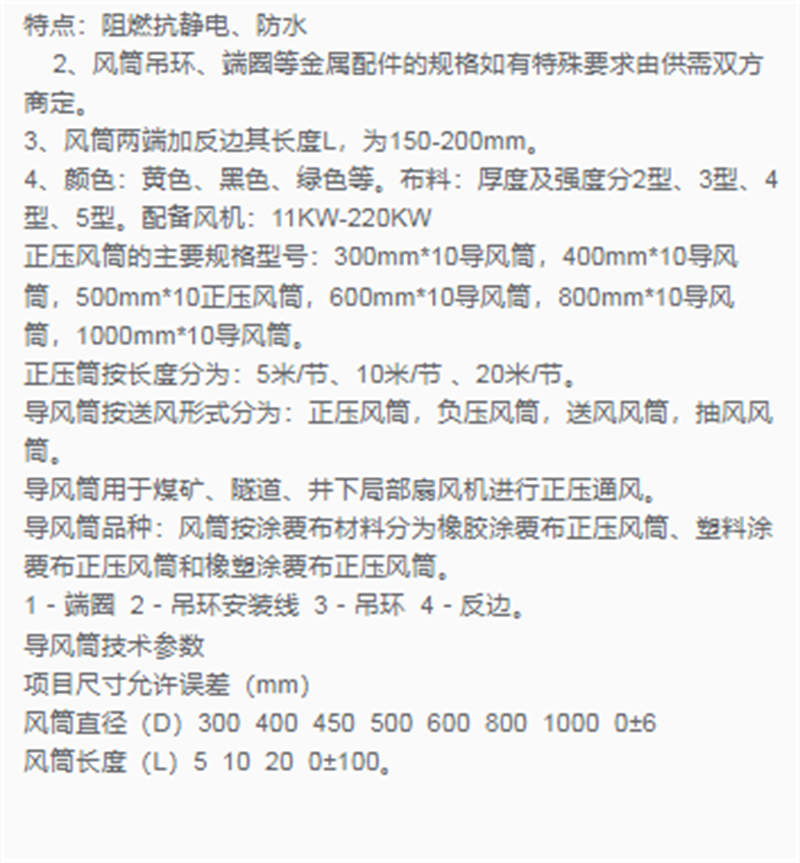 现货速发 使用方便300mm*10涂覆布正压风筒 中重