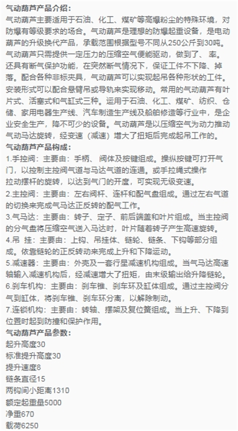 中重智能 气动葫芦HQ8-(3~16)矿用 使用寿命长