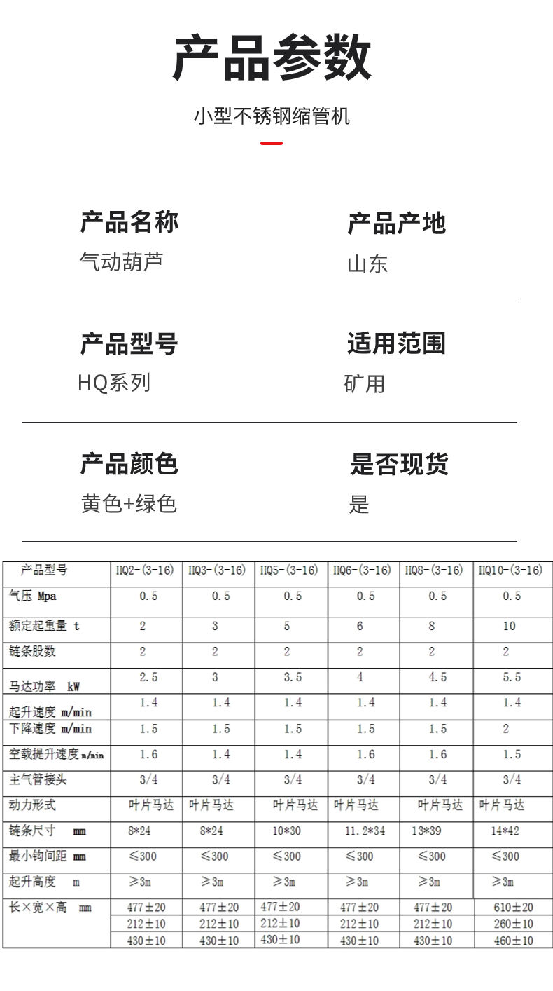 中重智能 矿用气动葫芦HQ3-(3~16) 作业时间长 噪音低好维护