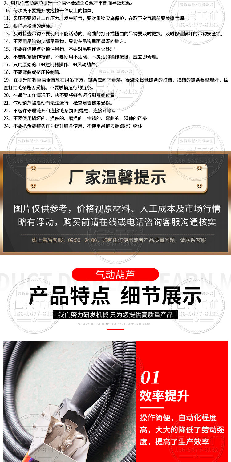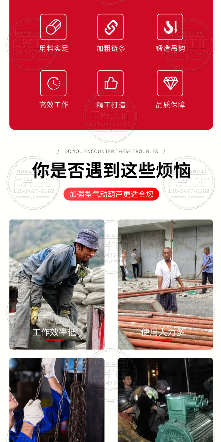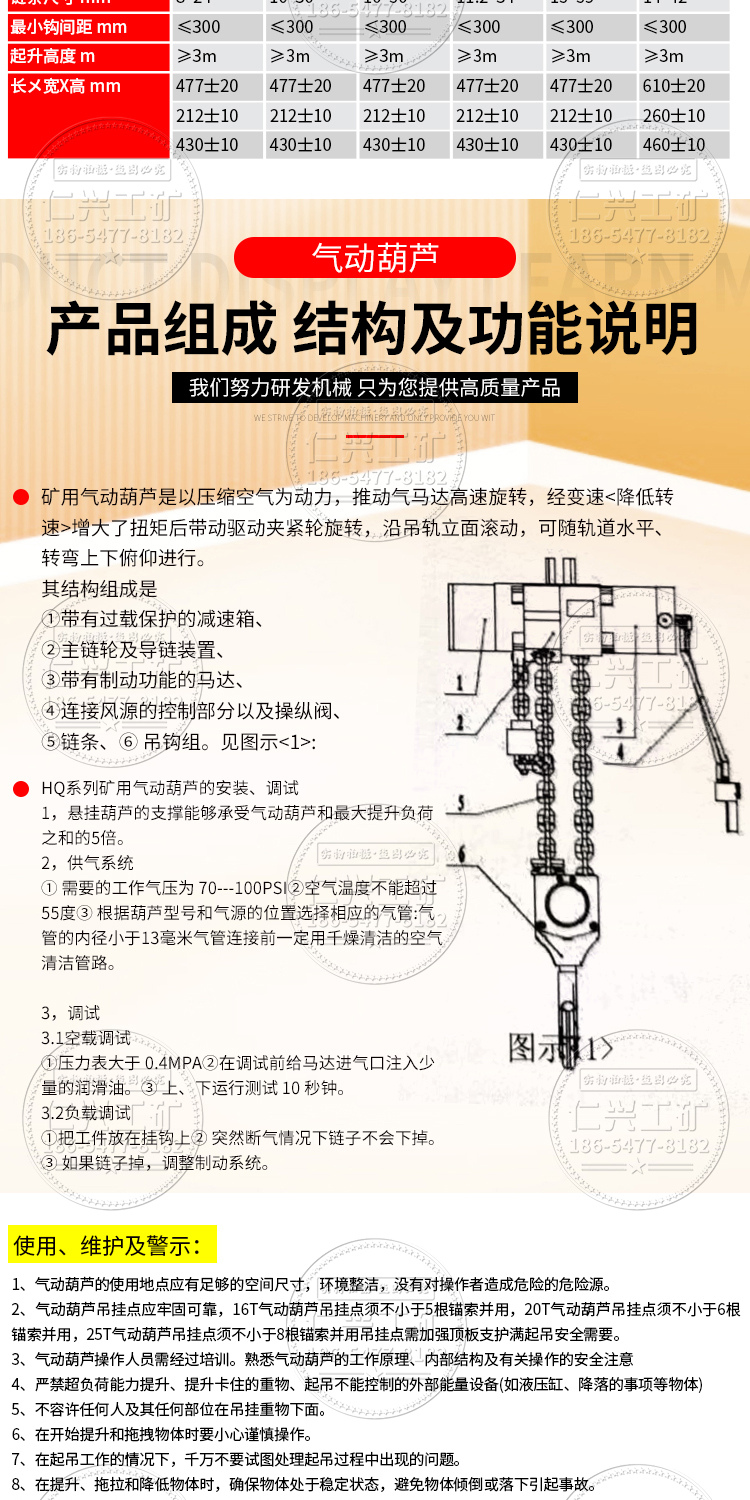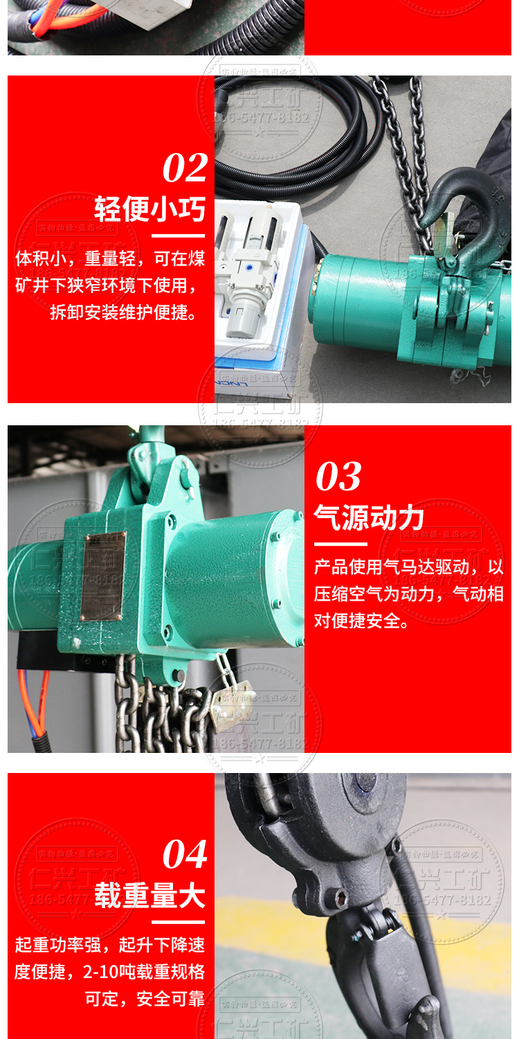 矿用防爆气动葫芦 HQ2T升高3米链条挂钩式小型起重机行走式起吊机
