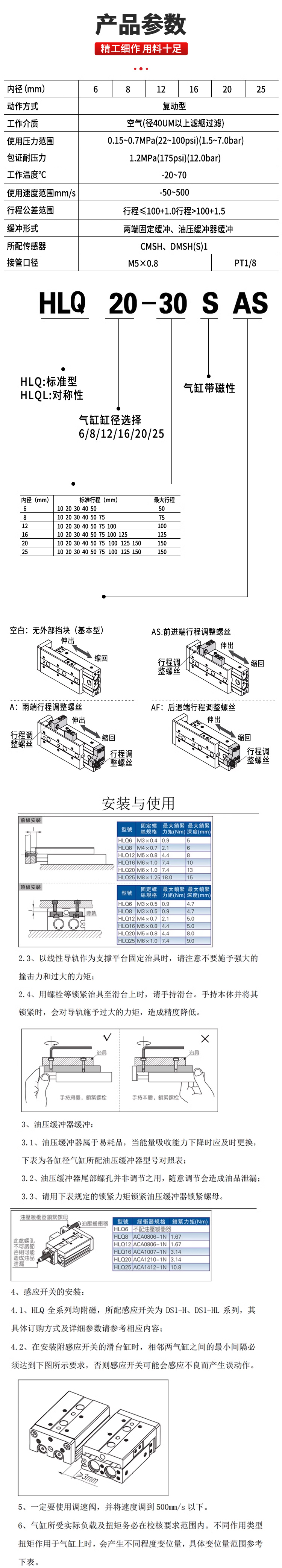 HLS HLQ HLH滑台气缸HLQ6/8/12/16/20/25X10S 20S 30S 40SHLQL