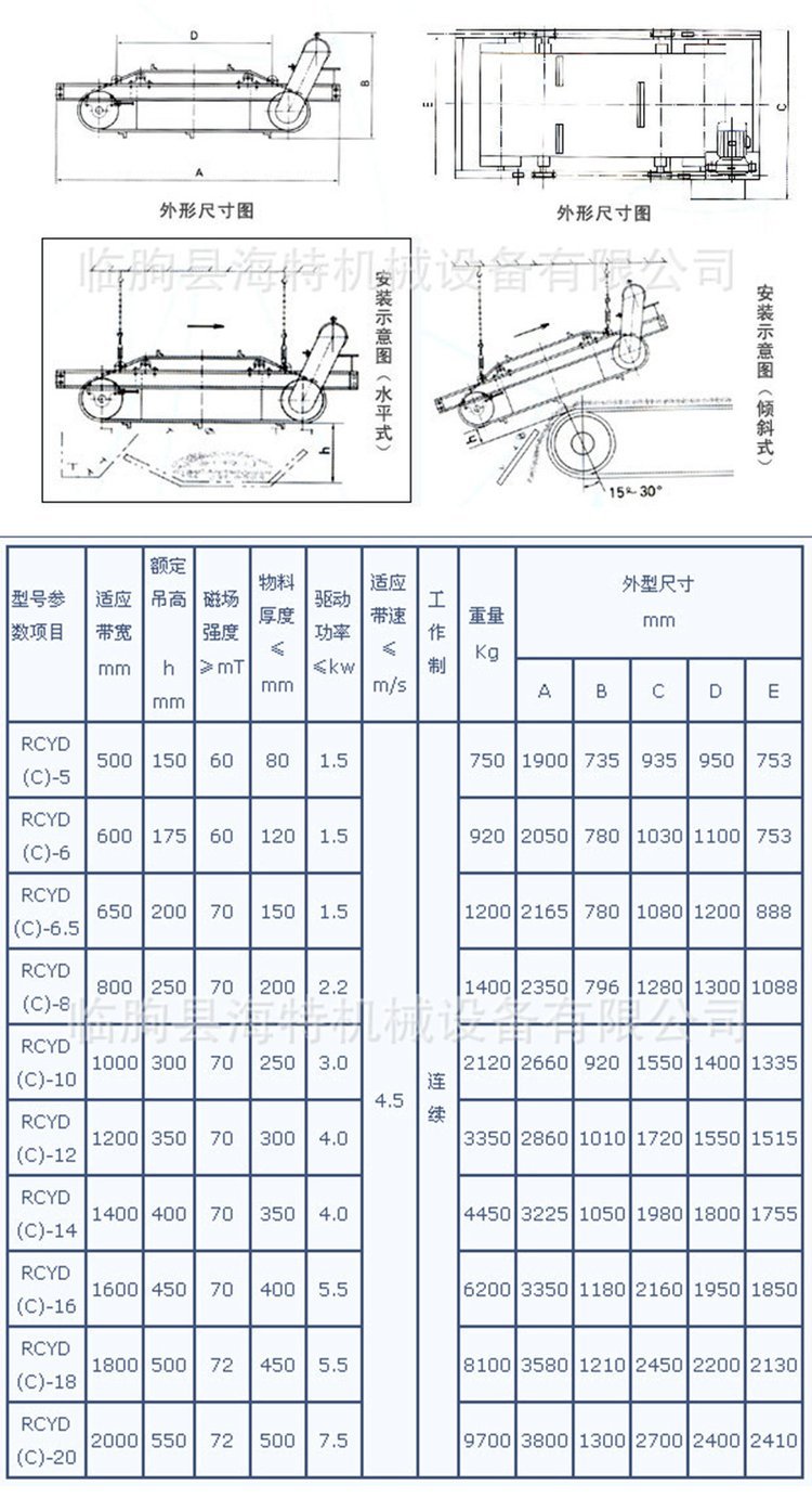 RCYD(C)永磁除铁器 自卸带式除铁机 上部给矿磁选机