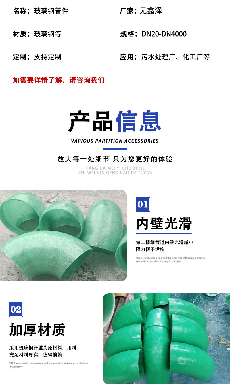 元鑫泽 玻璃钢连接件 风阀法兰盘 弯头 大小头变径 耐腐蚀强度高