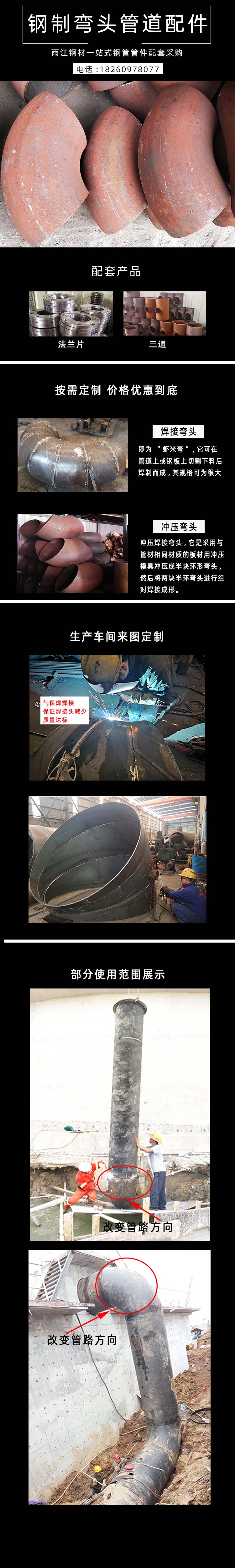 法兰管件管道连接用钢制弯头 材质20#无缝钢管直径377mm 雨江钢材