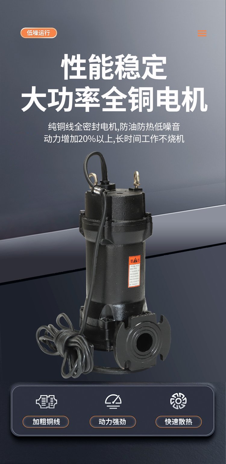 立式潜水排污泵 城市污水处理厂排水系统 40WQ151-5-1.5