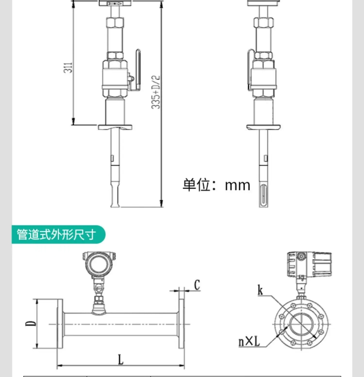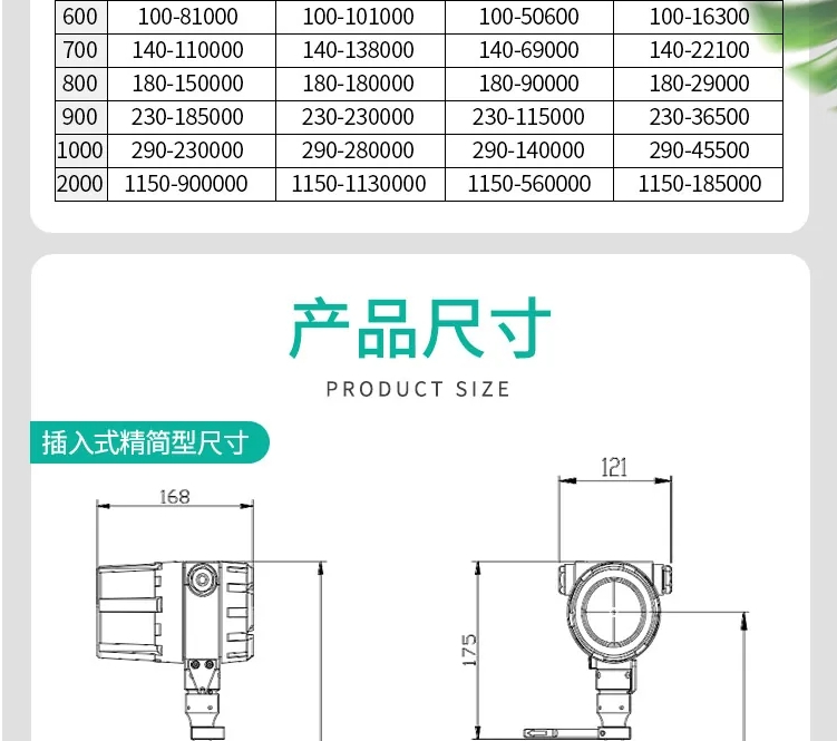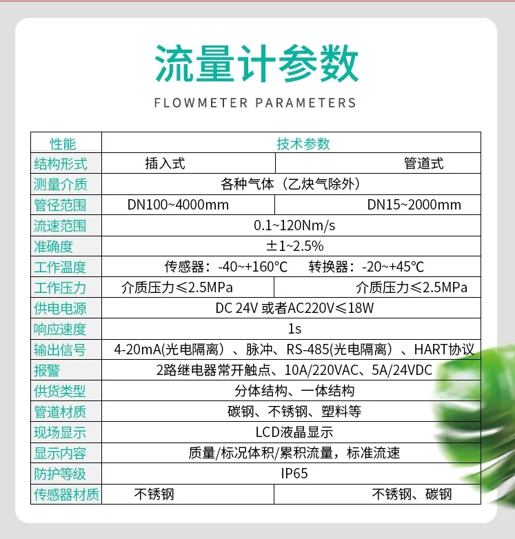 流量计类型 | 一体式/插入式/管道式/分体式 |