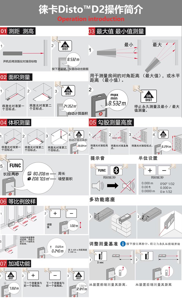 Leica徕卡Disto D2手持红激光测距仪 100米量房尺