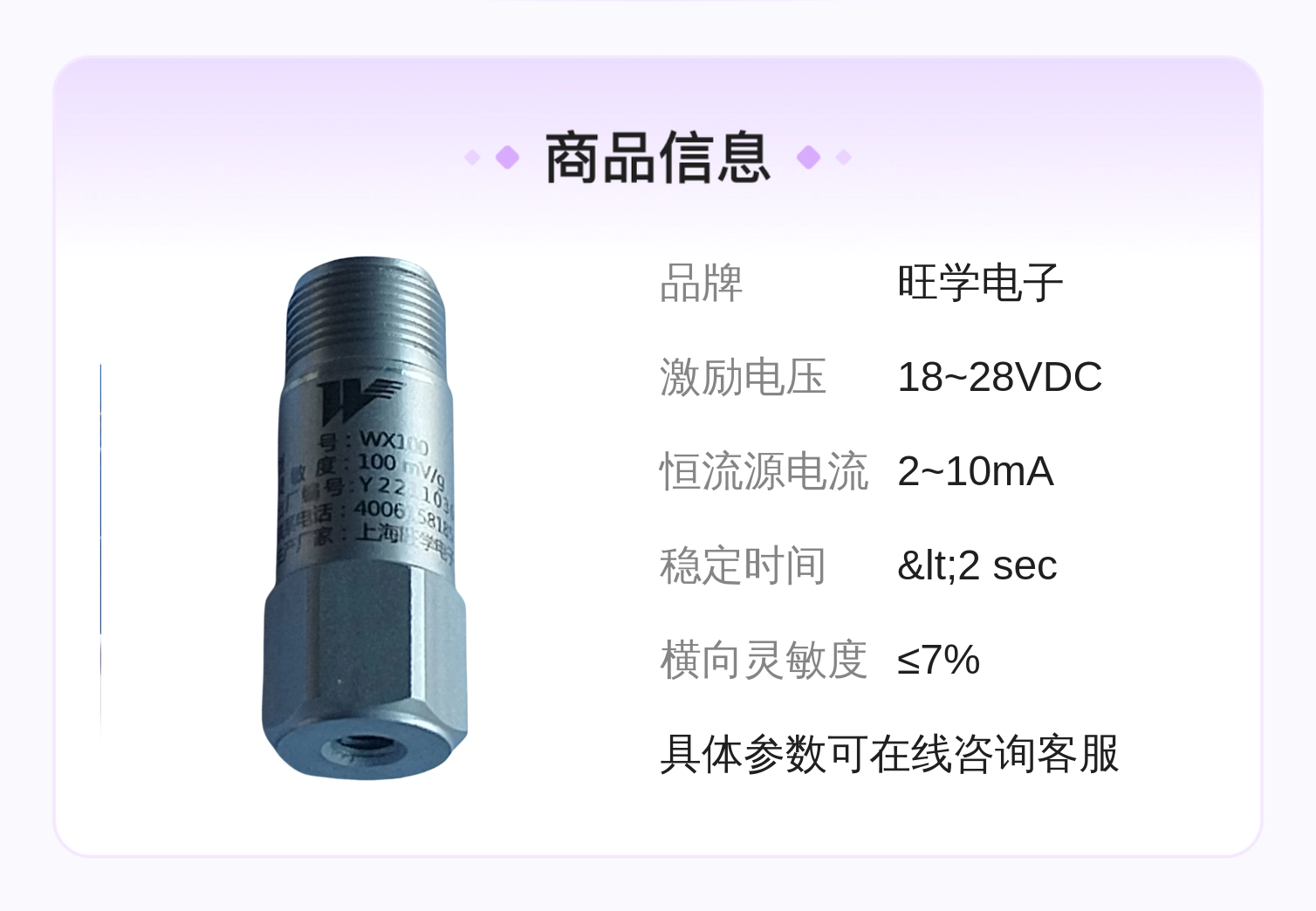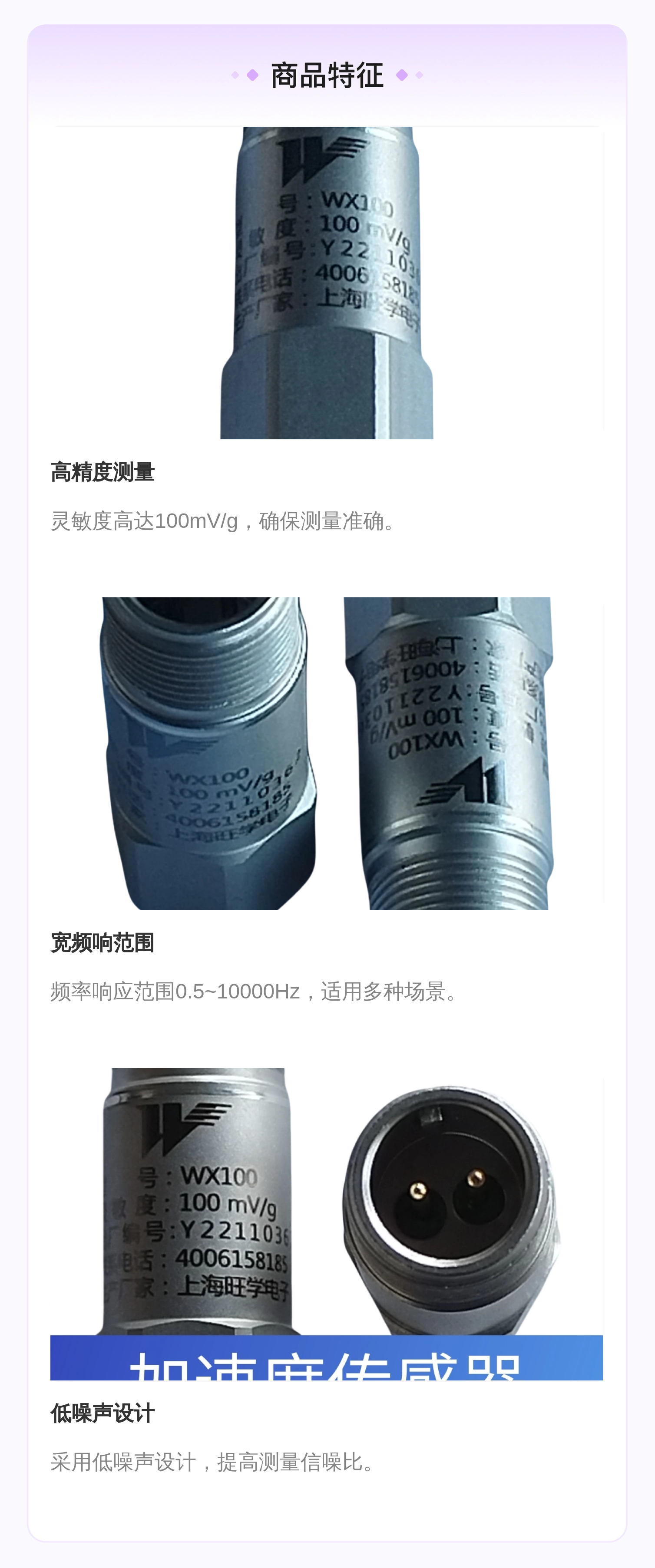 旺学电子WX100压电加速度传感器 高精测量 宽频响范围