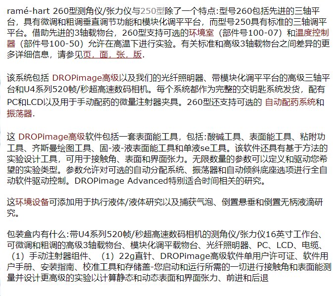 美国Rame-Hart M260 动态接触角 表面张力 界面张力测量 接触角测试