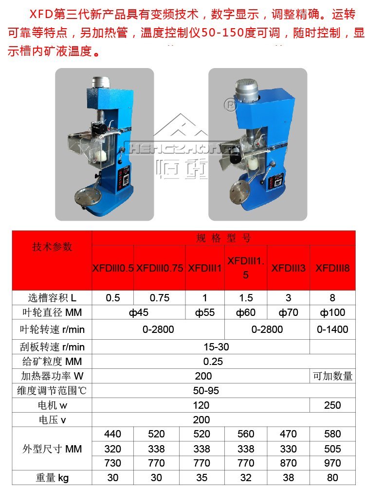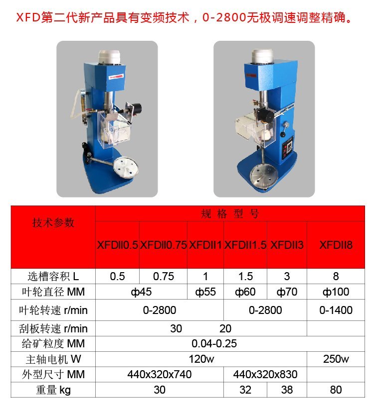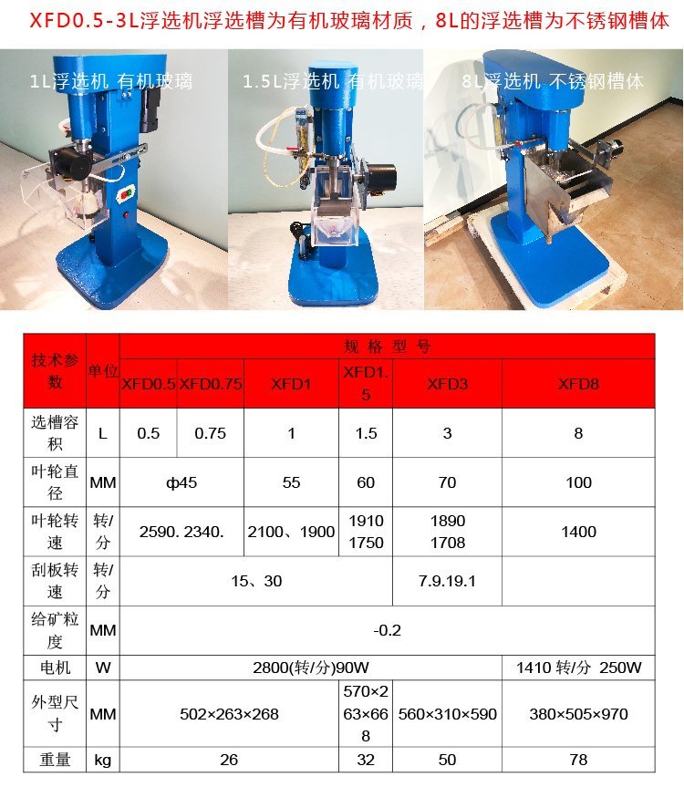 化验室单槽浮选机各种型号主要技术参数