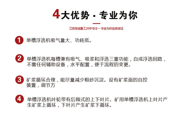 4、化验室单槽浮选机叶轮带有后倾式的上下叶片。矿用单槽浮选机上叶片产生矿浆上循环,下叶片产生矿浆下循环。