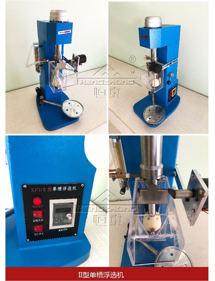 2、化验室单槽浮选机每槽兼有吸气、吸浆和浮选三重功能,自成浮选回路,不需任何辅助设备,水平配置,便于流程的变更。