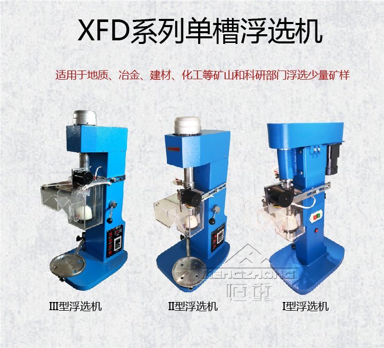 XFD化验室单槽浮选机主要供煤电、电力、矿山、地质、化学、冶金、建材及化工等工业实验浮选少量矿样用。该实验室单槽浮选机由电动机三角代传动带动叶轮旋转,产生离心作用形成负压,一方面吸入充足的空气与矿浆混合,一方面搅拌矿浆与 混合,同时细化泡沫,使矿物粘合泡沫之上,浮到矿浆面再形成矿化泡沫。调节闸板高度,控制液面,使有用泡沫被刮板刮出