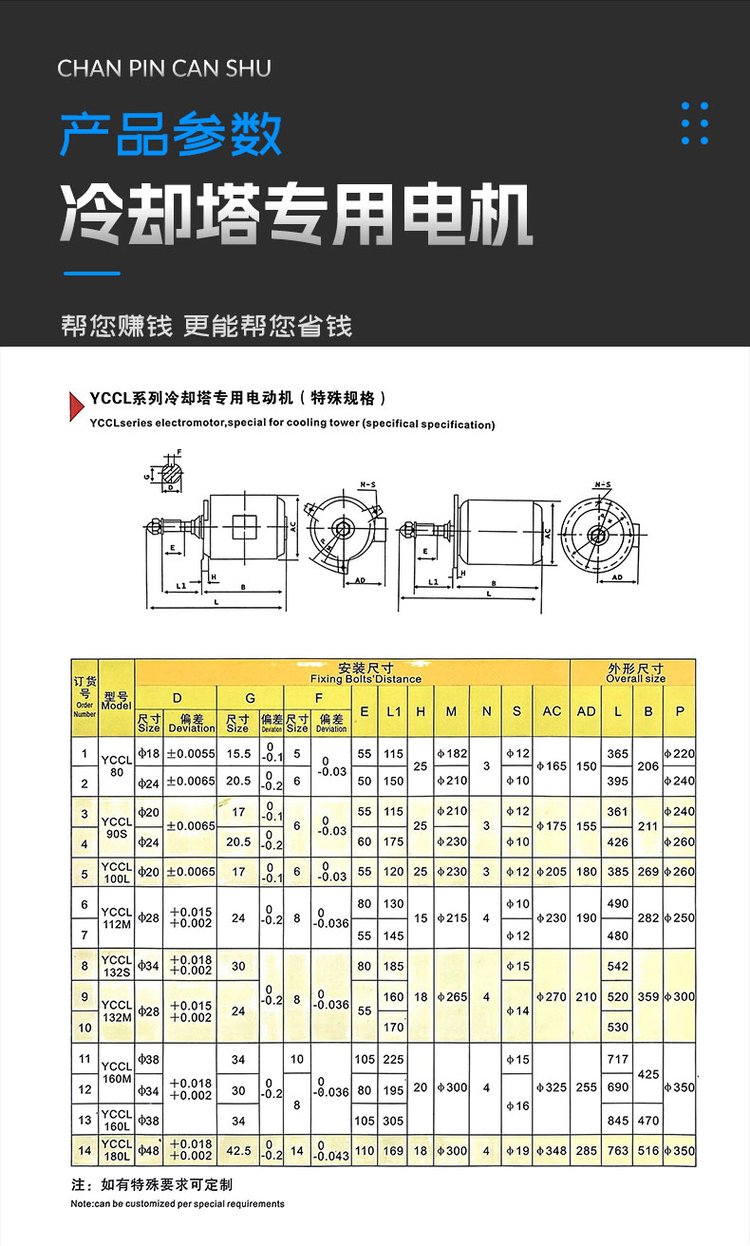 YCL冷却塔专用电机户外防水电机 水塔全铜芯减速电机YCCL风扇电机