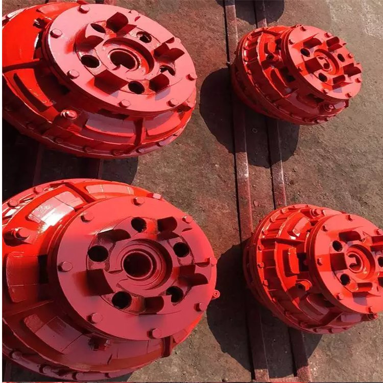液力耦合器是一个内含两个环形轮片的密封机构。驱动轮称为泵轮,被驱动轮称为涡轮,泵轮和涡轮都称为工作轮。在工作轮的环状壳体中,径向排列着许多叶片。泵轮和涡轮装合后,形成环形空腔,其内充有工作油液。泵轮通常在驱动下旋转,带动工作油液做比较复杂的向心力运动。高速流动的油液在的作用下冲击涡轮叶片,将动能传给涡轮,使涡轮与泵轮同方向旋转