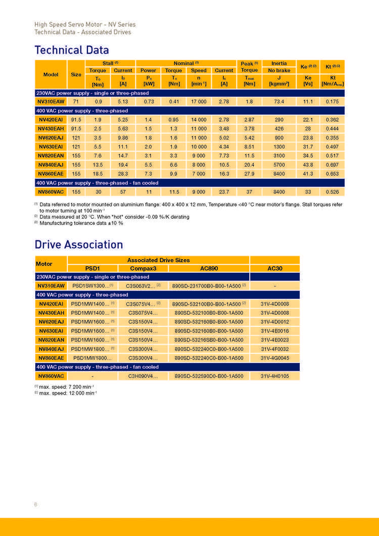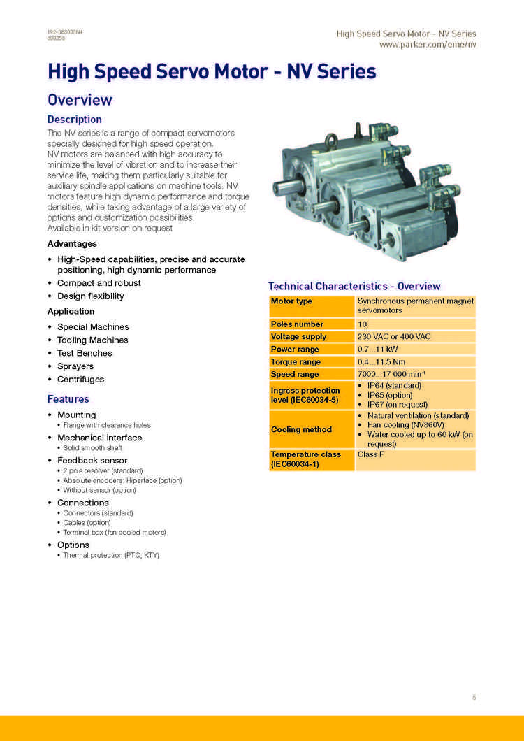 高速永磁伺服电机NV系列10000转12000转15000转