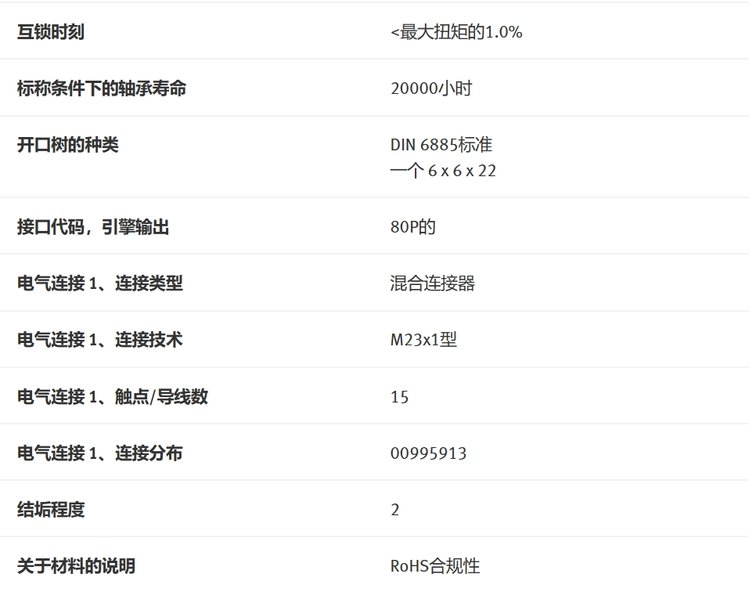 标称条件下的轴承寿命 | 20000小时 |