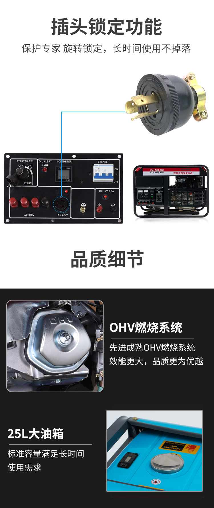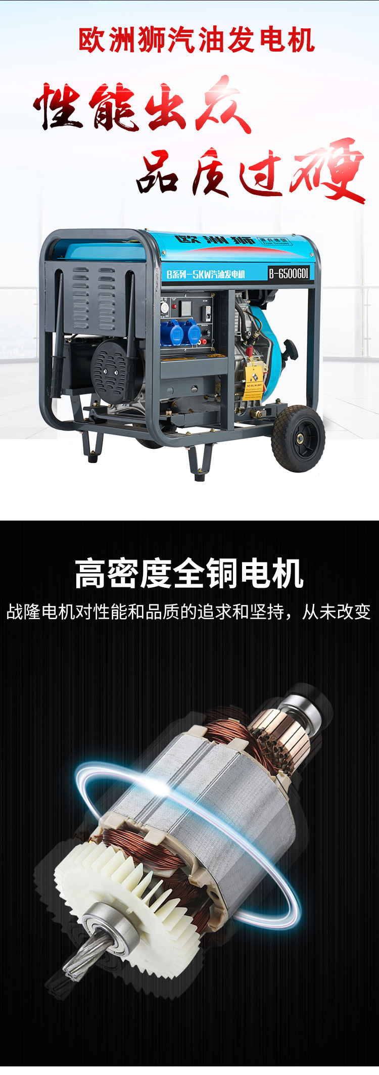 6KW欧洲狮开架汽油发电机 便携式 单缸风冷 纯铜电机 单三相 应急电源