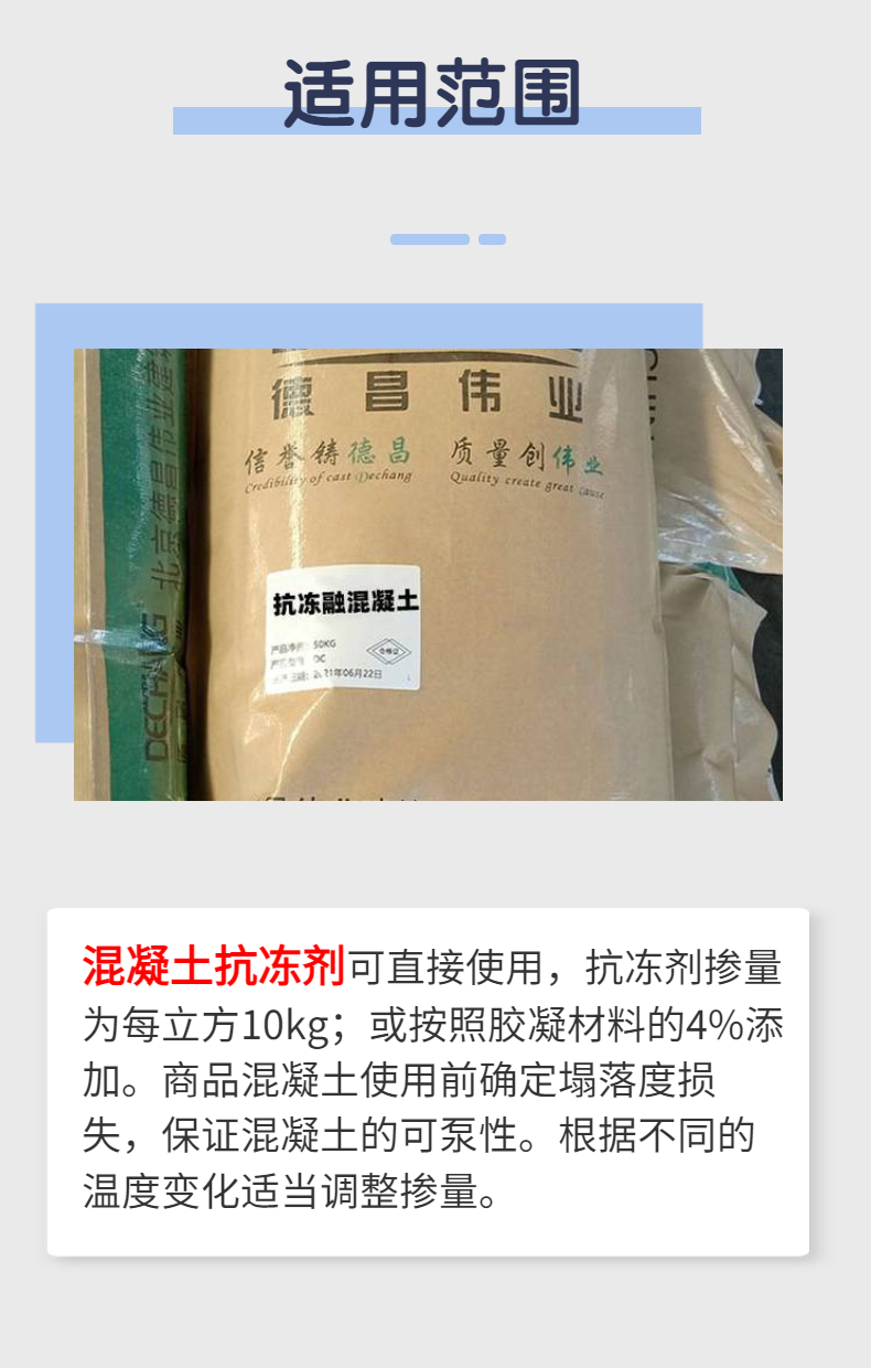 用途范围 | 混凝土抗冻 |