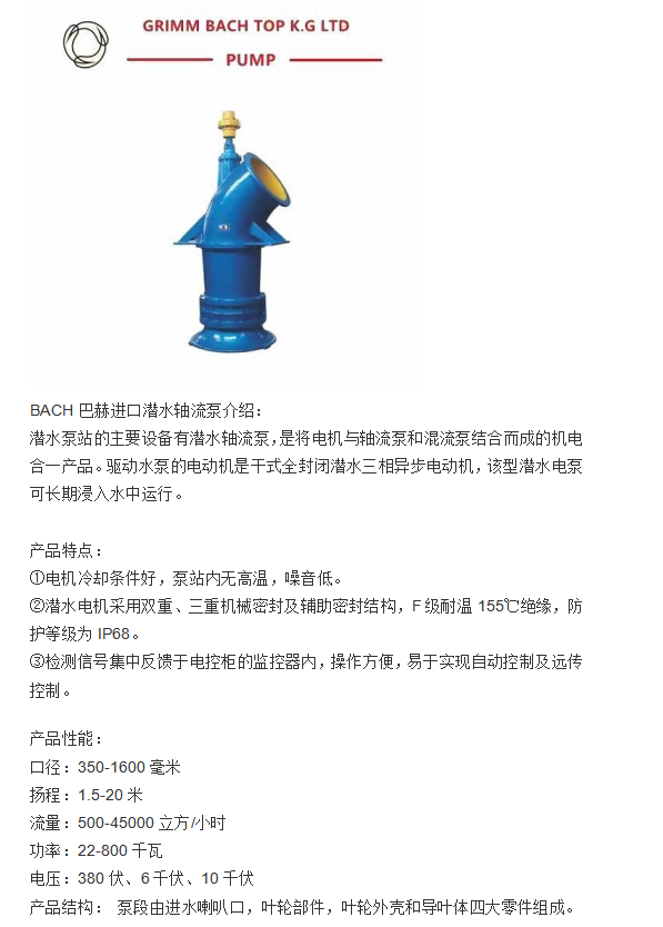 进口潜水混流泵 德国不锈钢水泵品牌 流量大 低噪音 结构稳定