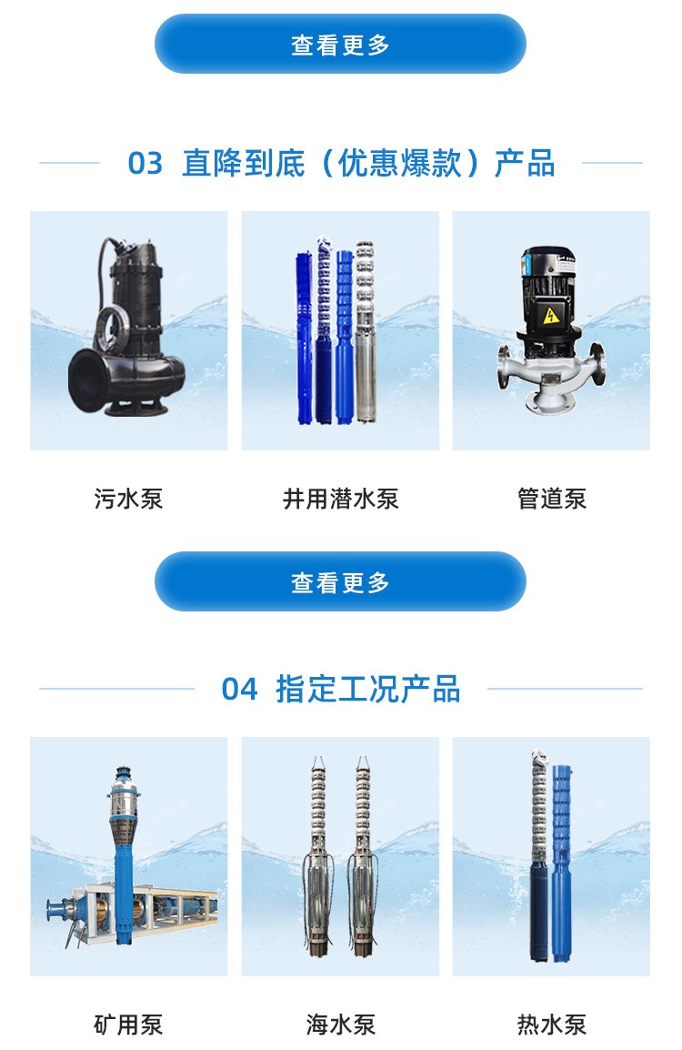 适用环境 | 潜水轴流泵适用于多种环境,如江河水系取水、湖泊取水、矿坑取水、水库调水、河流调水、海水提升、污水排放、雨季防汛等多种环境 |