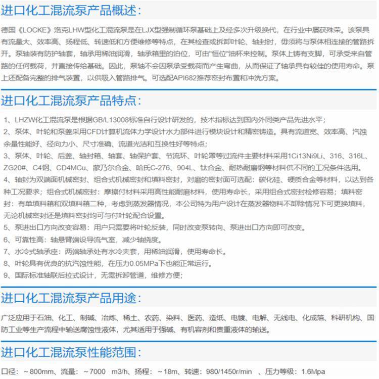 进口化工混流泵 流量大 效率高 耐热 耐磨 德国洛克品牌 LOCKE