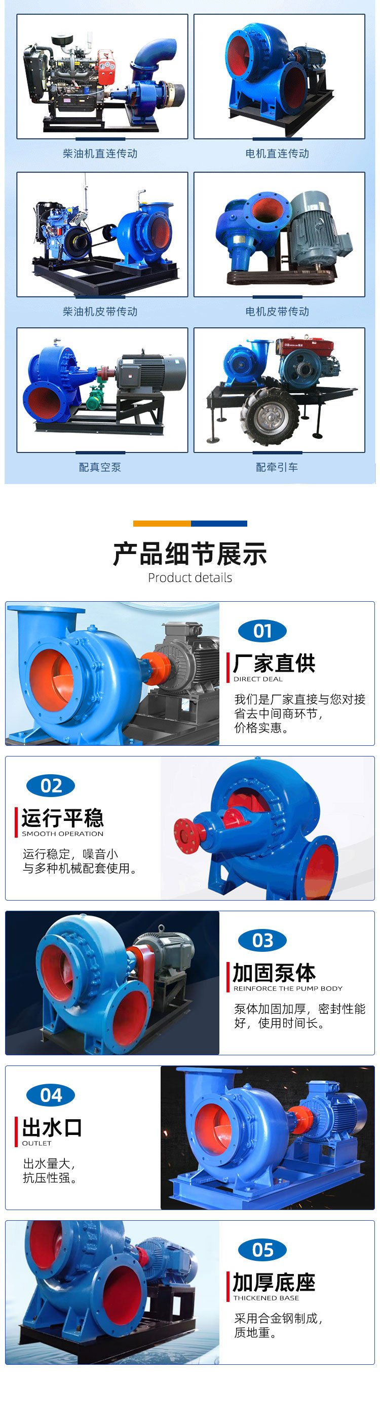 HW卧式灌溉混流泵 柴油机抽水泵大流量涡轮离心泵