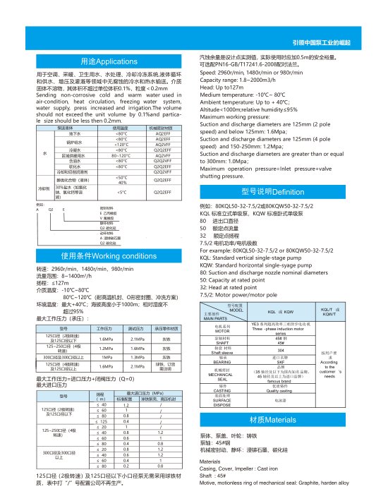 凯泉KQL立式管道泵 KQW卧式增压泵 空调循环泵 供暖单级泵