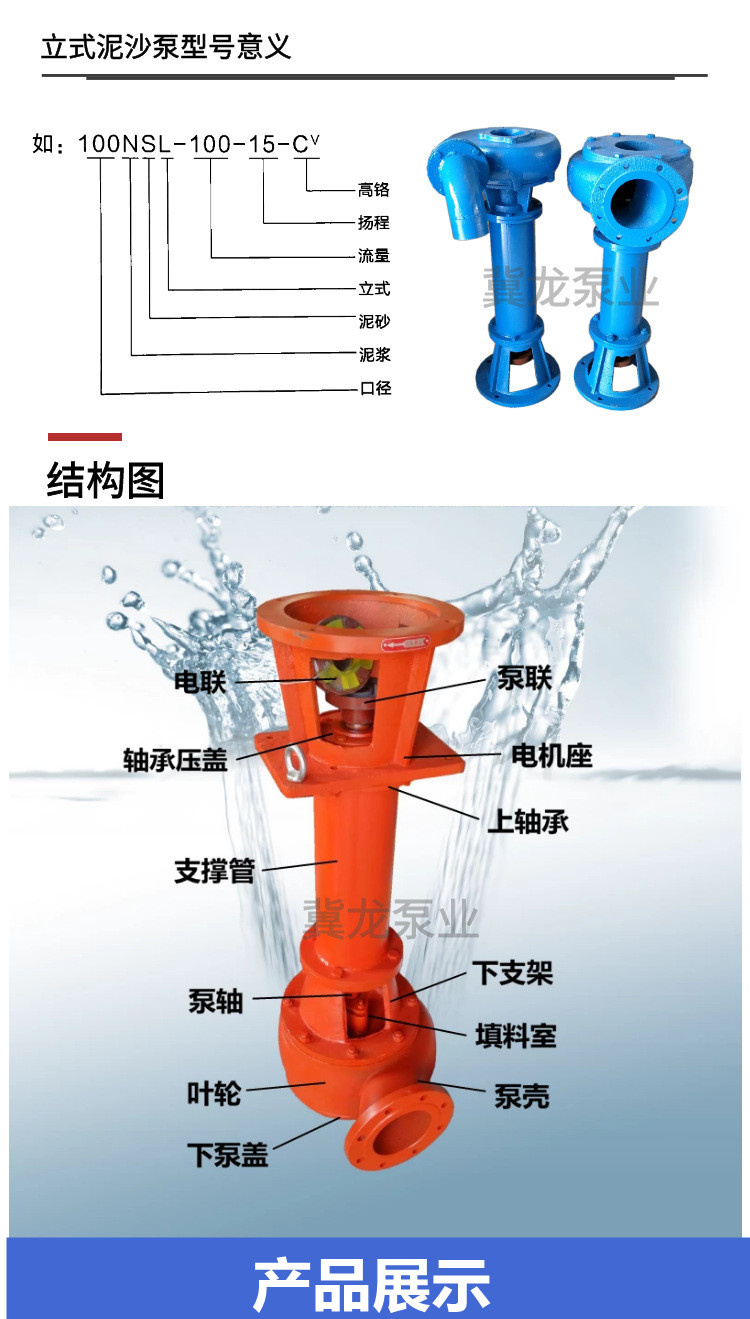 液下抽沙泵100NSL立式泥浆泵加厚耐磨渣浆泵4寸钻孔灌浆泵铸铁