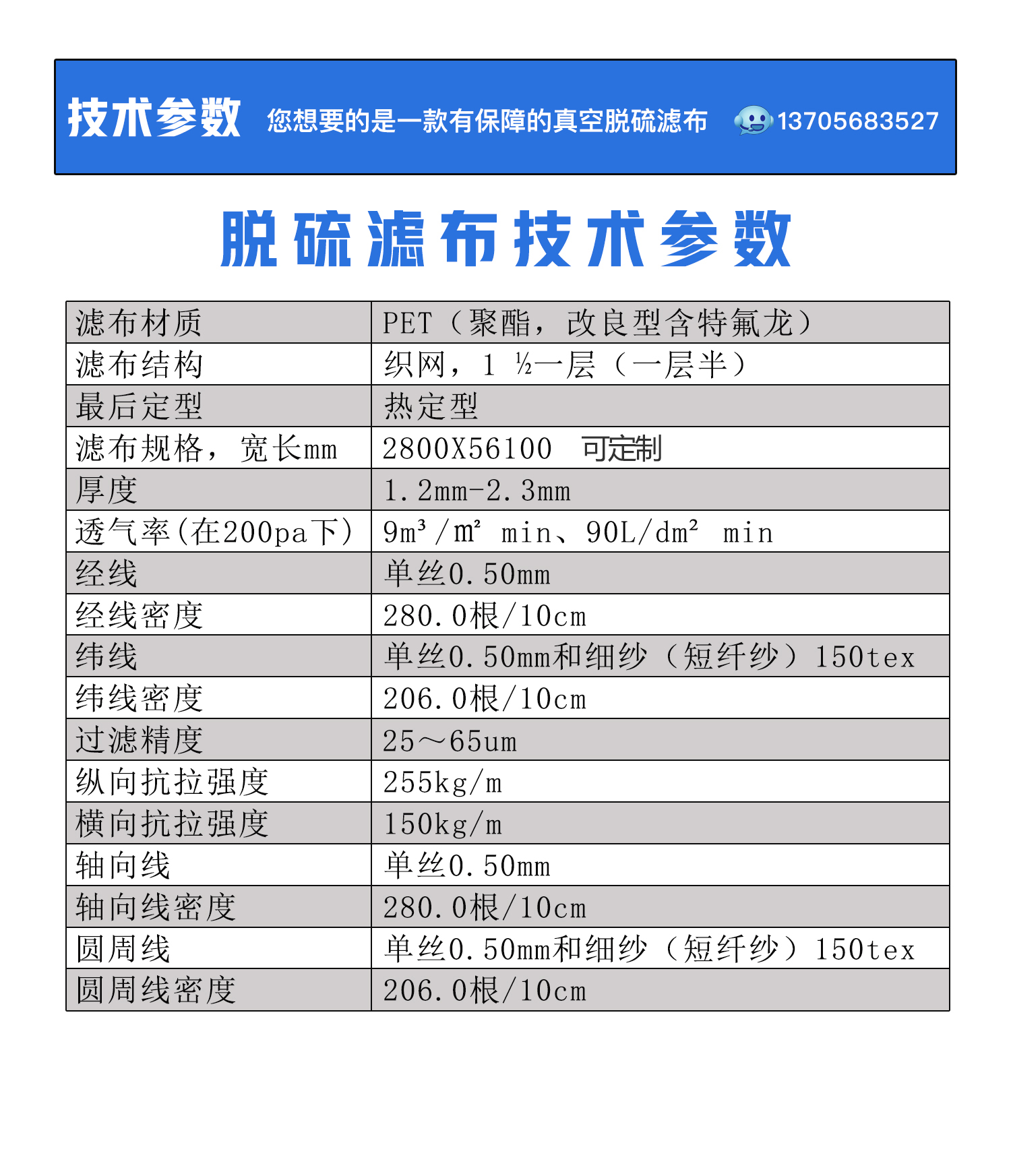 滤布类型 | 单丝滤布 |