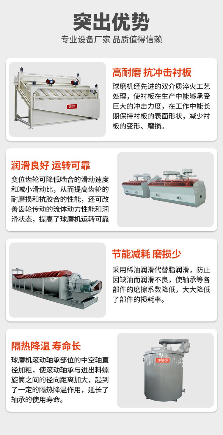大型节能球磨机 铸件耐磨 结构简单 可干式或湿式磨矿