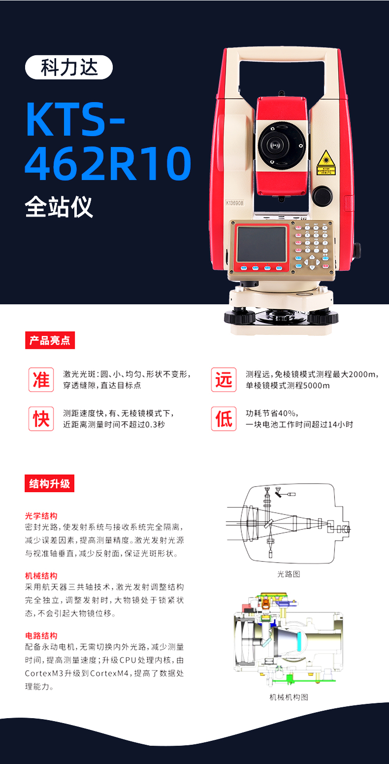 科力达高精度全站仪 1000米免棱镜工程测绘仪器 工程专用红光标线仪