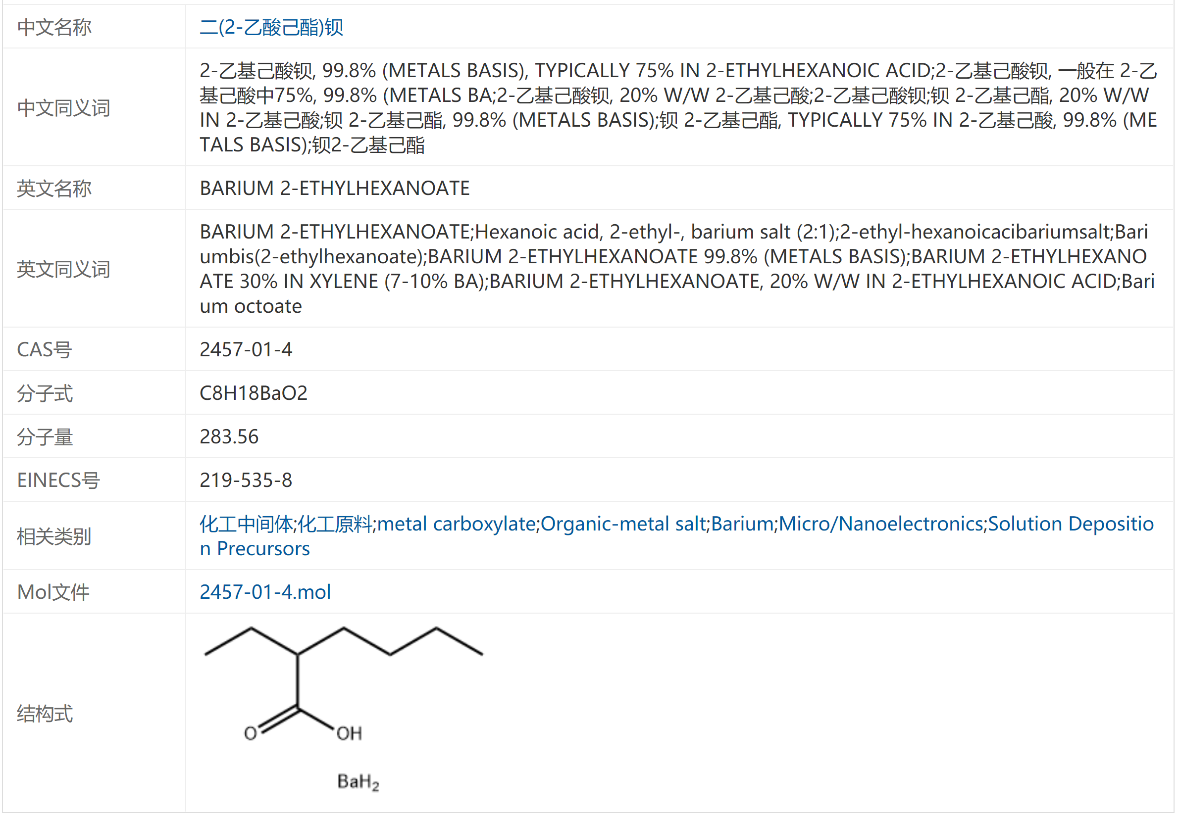 二(2-乙酸己酯)钡/异辛酸钡 2457-01-4 金属含量20% 生化试剂 催干剂