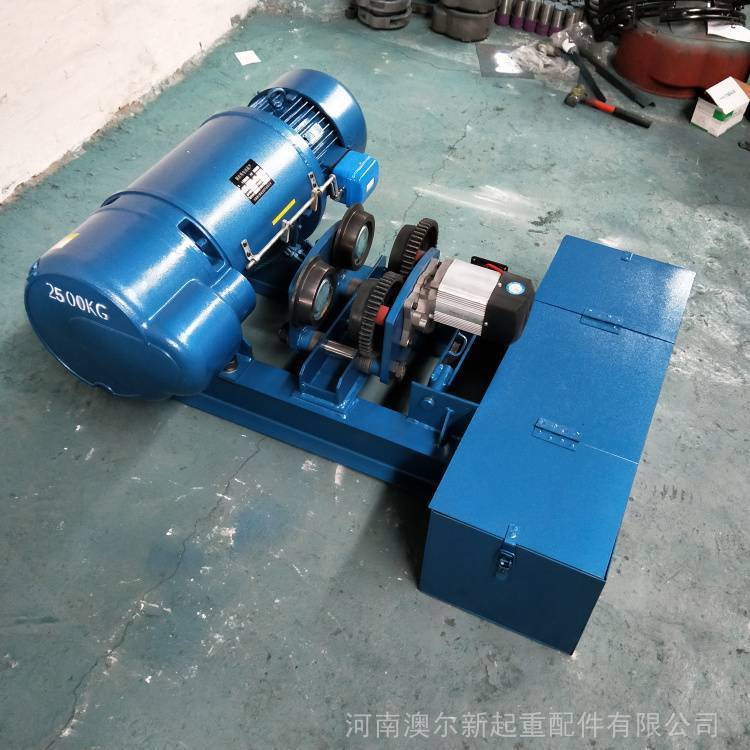 电动葫芦中间是钢丝绳卷筒,用小车悬挂于工字钢制作的天车大梁上,一端用法兰固定一台能够制动的锥形转子电动机,用传动轴将动力传递到另一端的减速机。经过减速的动力传递给钢丝绳卷筒,带动吊钩起重。行走小车是一个小锥形转子电动机,经过减速,动力传递给行走轮,小车就能沿着工字钢行走。这个天车在大车的行走装置的带动下,就能完成起重和移动定位的任务。