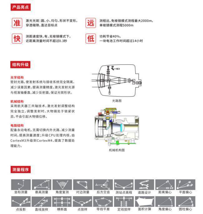 精度 有棱镜:2+2ppm 免棱镜:3+2ppm