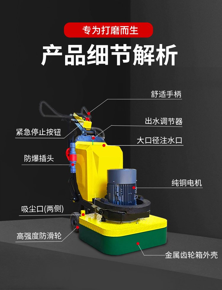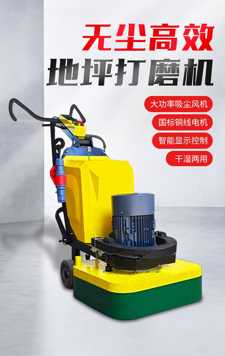 浙江湖州 12头双盘无尘地面打磨机-研磨机 手推式旧地坪去除研磨抛光机汉中中重型研磨机主要用于大或中范围地面的研磨处理,它能有效打磨混凝土表层及砂浆层和旧的地面等。具有轻便、灵活,工作效率高等特点。带有吸尘器电源插座,吸尘器电源线可以直接和研磨机相连,避免工作时,需要2条电源线的麻烦.配上特种磨盘还可做地面翻新和抛光用,真正的一机多用,是做地坪工程处理的理想设备。
