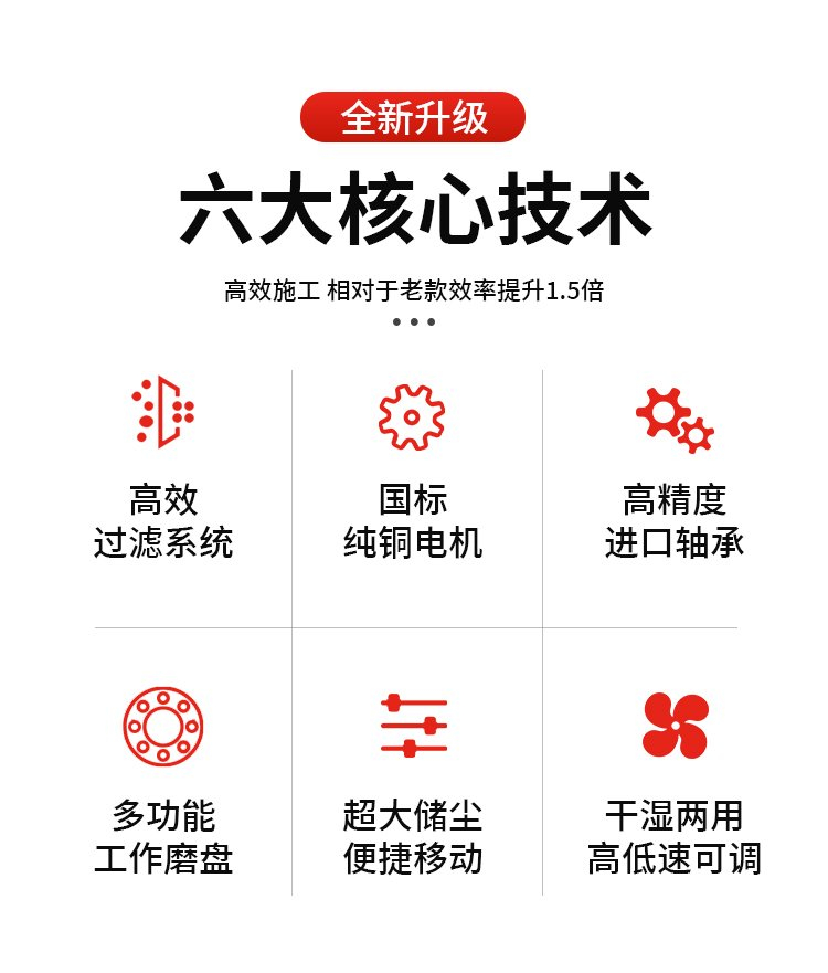 1.该机可配一台吸尘器,,研磨吸尘同步进行,做到无尘施工.