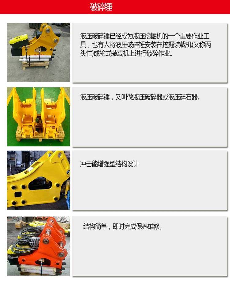 用破锤作业时,操作挖掘机/装载机应遵守挖掘机/装载机制造厂家的 操作规定。确认使用安装完好、调试正常的破锤。